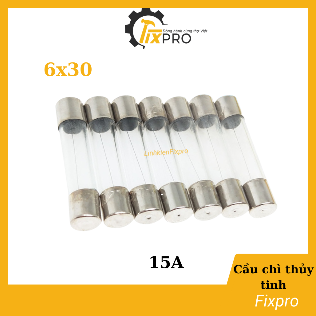 Cầu chì thủy tinh 15A 250V 6x30mm chất lượng tốt (Túi 10 con)