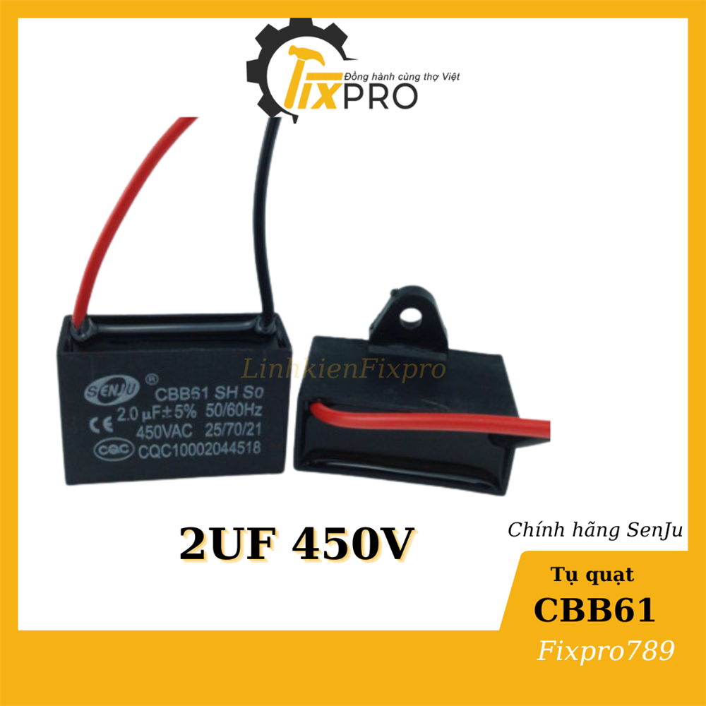 Tụ quạt CBB61 2uF 450V chính hãng SENJU loại xịn